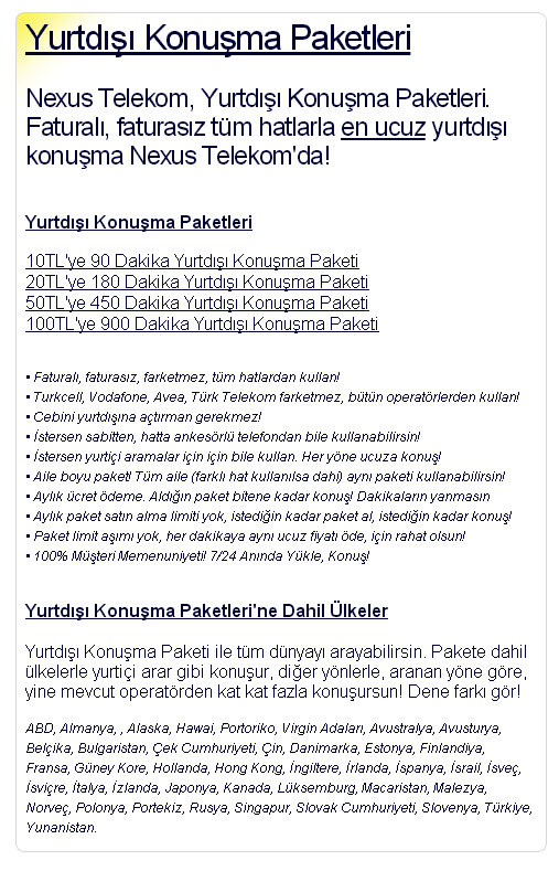Nexus Telekom Yurtdışı Konuşma Paketleri